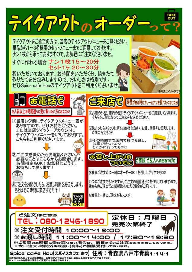 写真を送る場合以下から(1枚ずつしか送信出来ません、8M以内です) 例えばテイクアウトメニュー表の写真やお料理の写真等送って頂ければ掲載します。